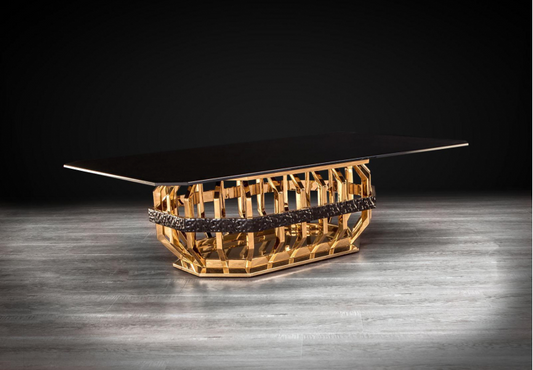 Mirage Gold Rectangular Black Glass Top Coffee Table