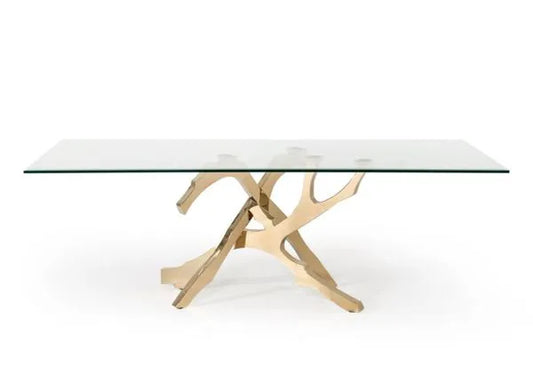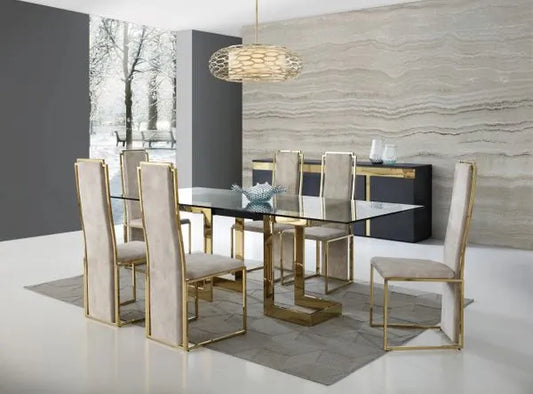 Kiki Glass and Gold Dining Table Set with 6 chairs