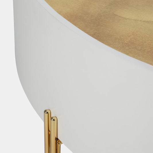 Wood,24" Gold Leaf Top Side Table, Wht/Gold