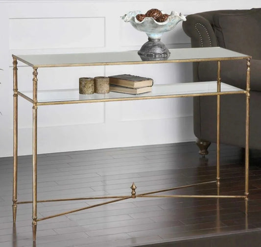 Metal/Marble Glass Console Table Gold