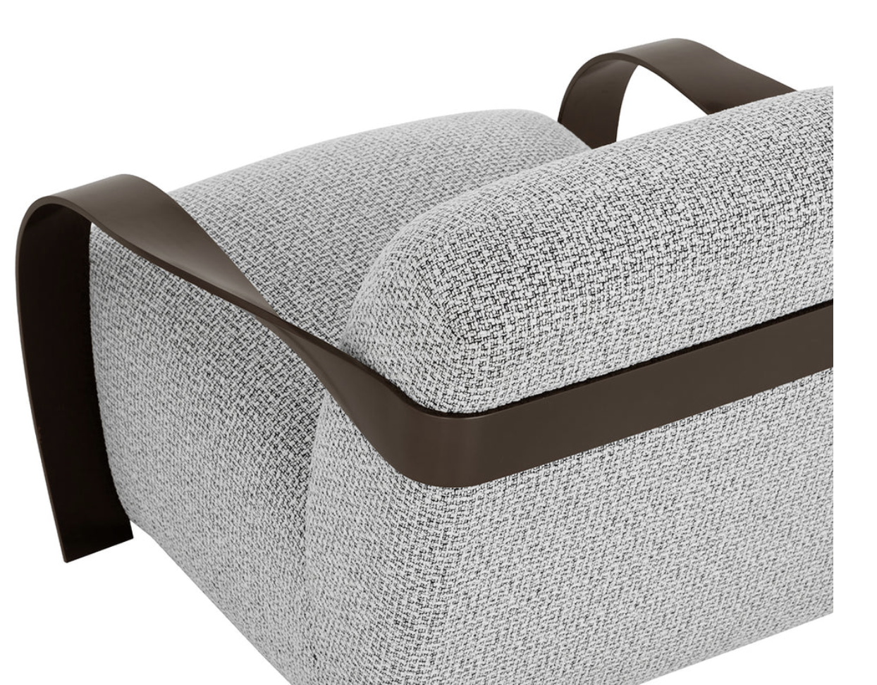 The Anestasia Lounge chair is an incredible achievement in sculptural appeal and mid-century wonder. With twisted dark brass metal arms and upholstered in helios check black fabric, this brilliant lounge chair is a bold and shapely masterpiece.