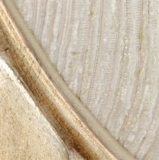 The Ariane Side Chair features a sleek, contemporary design that blends hard angles with elegant curvature. Crafted from mahogany in a Rose Silver finish, the chair is defined by straight, tapered legs, with the back legs curving gently at the tips to support the ovate backrest. Upholstered in Horace Ivory 2179 fabric, with welt trim in Gimlet Sand 1116, the chair offers a luxurious color palette that enhances its sophisticated appeal.