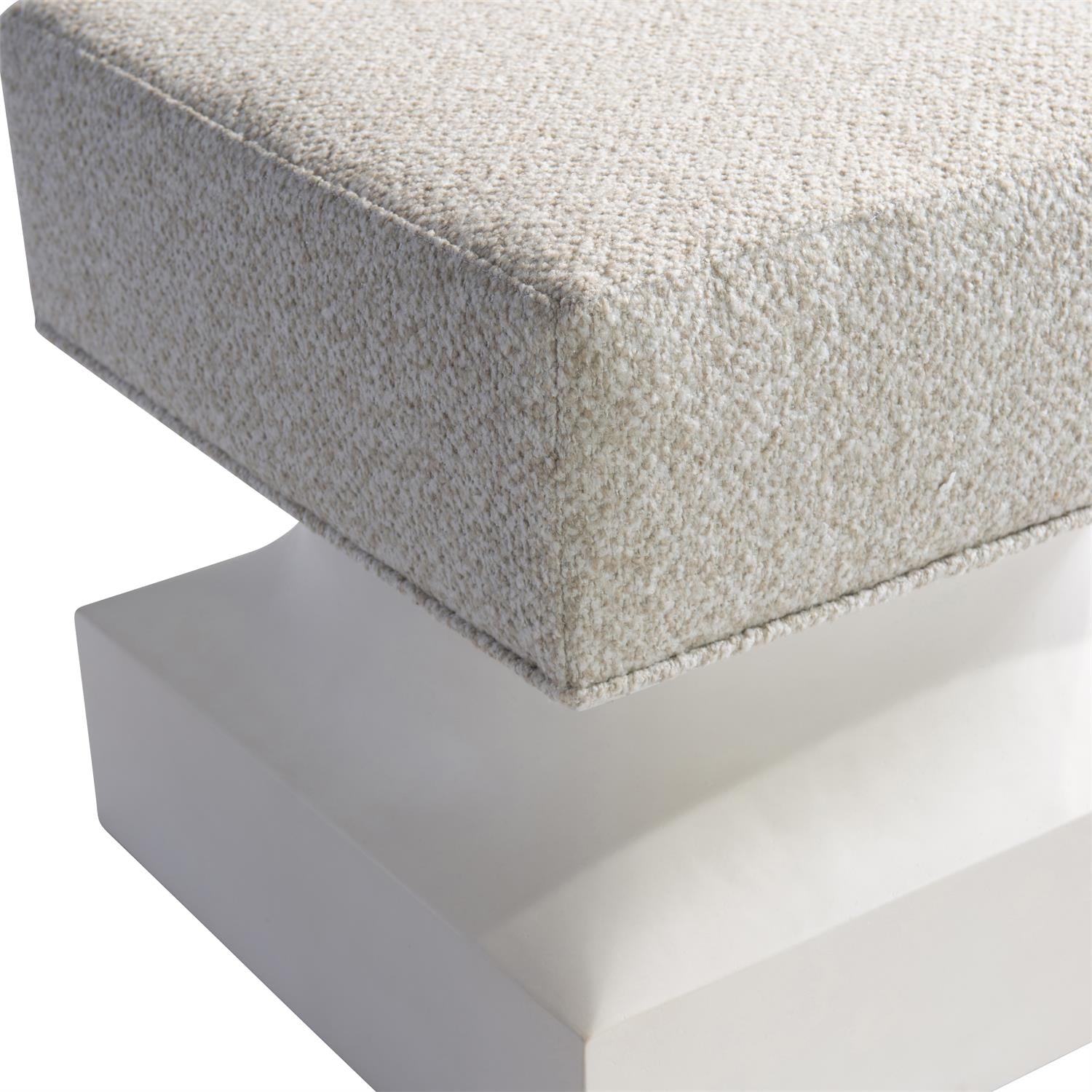 The Aventura bench has a sculptural form that's counterbalanced by a soft upholstered seat. The cast resin base in a Tusk faux stone finish has concave shaping on the sides and a square bottom. It's a sophisticated look with casually clean lines.
