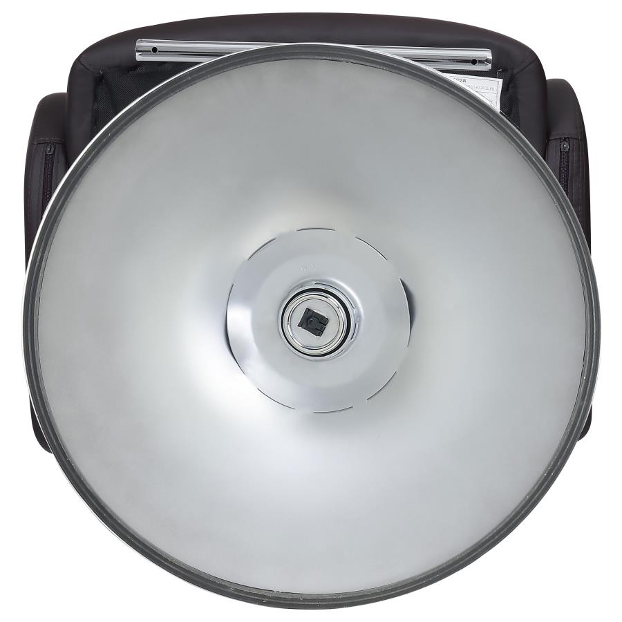Expressive design elements create a fun look, combining retro and barbershop charm with a bright, shiny chrome base and adjustable seat heights