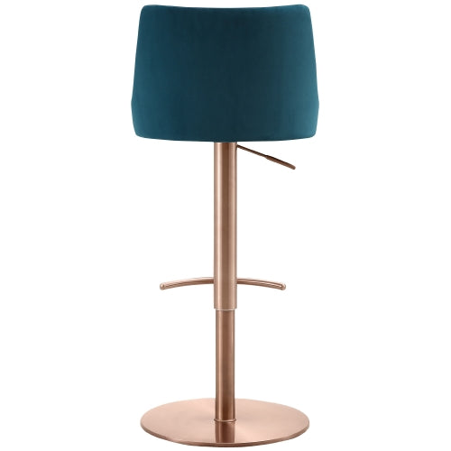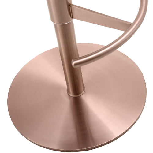The Bennett stool has enveloping lines and expresses a great formal elegance, thanks to their perfectly calibrated proportions. Blue Velvet, Adjustable Height with Gas Lift, Swivel Base in Rose Gold Color.