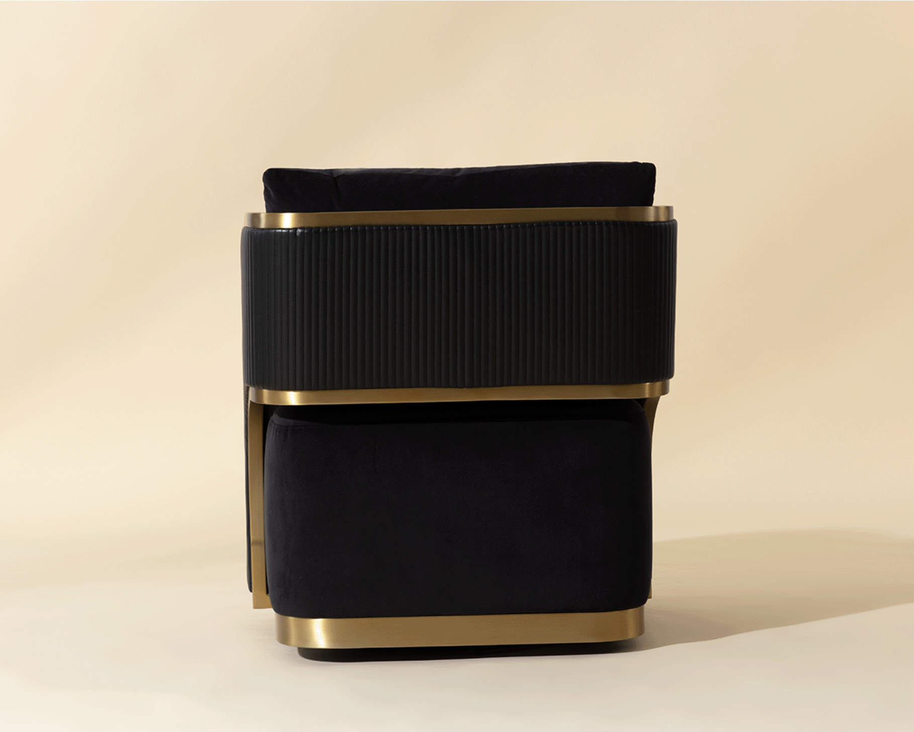 Bold and stylish, the Blazer Swivel Lounge Chair is sure to turn heads. Featuring a daring silhouette upholstered in napa black faux leather and abbington black fabric. Gold stainless steel detailing and channel stitching add depth and visual impact to the overall look of the piece.