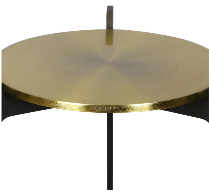 This striking pair of candle holders features a modern base crafted from iron in a matte black finish with subtle antique brass details for added luxury. Two, 3x3 distressed white candles included.