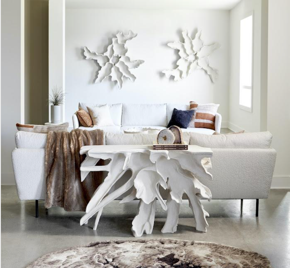 Freeform Cast Carved Roots is a lighter-weight way to add drama to your wall without the heaviness of solid wood. We preserve and cherish the natural indentations so lovingly made by Nature to bring you contemporary, organic wall decor. Available in whitestone, this piece would be perfect for any indoor or outdoor space.