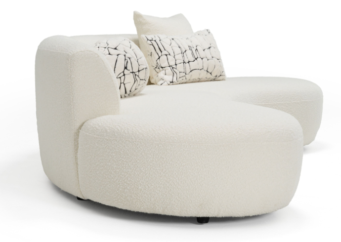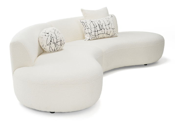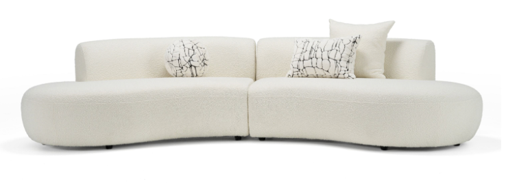 Cream Curved Boucle Fabric 2 Piece Sectional