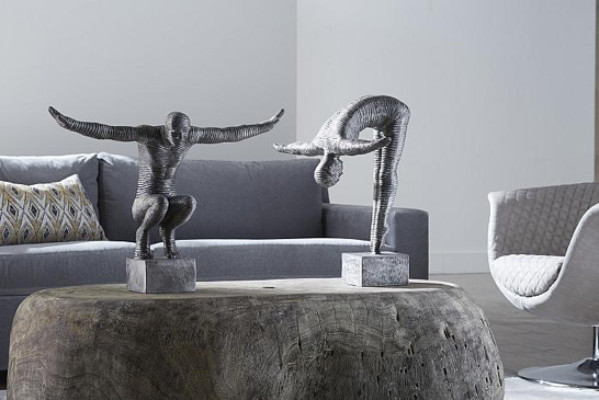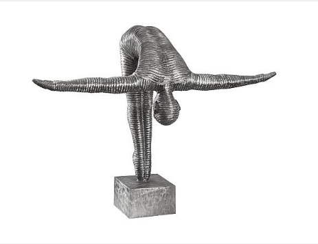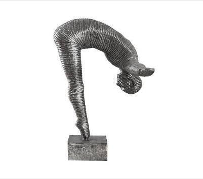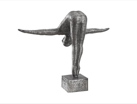 Made of metal in an aluminum finish, the Small Bending Diver Sculpture has a striated surface that brings it one aspect of its design distinction—when the finish is rubbed onto its surface, it collects in the valleys to bring added patina to the gray sculpture. This lends it a textural feel that convinces the eye this is a vintage decorative accessory. In the foyer of a modern home filled with contemporary art, this decorative accessory will hold its own. We offer a number of sculptures in this family of decorative accessories. Each of these reflects the ethos that Phillips Collection personifies: modern organic.