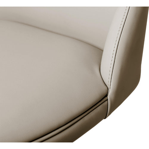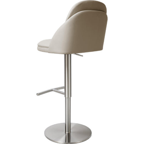 Florence is a barstool with an essential design, exact in proportions, with clean and curved lines, perfectly adapting to the most diverse residential and hospitality contexts. Barstool, in Light Grey faux Leather, Swivel Base in Brushed Silver Stainless Steel, with Gaslift.