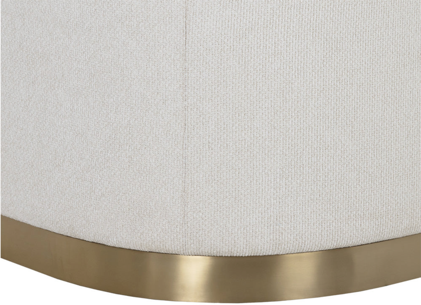 The Fortina Sofa balances mixed materials to bring this contemporary design to life. Expertly upholstered in rhea light barley performance fabric for a soft touch. Gold stainless steel metal inlay and padded curves accentuate the chair's curved silhouette. Performance fabric is moisture repellent, durable and easy to clean.