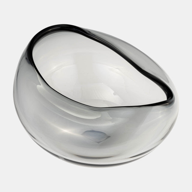 Glass, 10"d Irregular Shape Bowl, Smoke