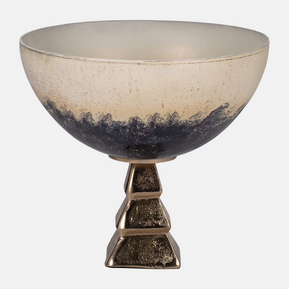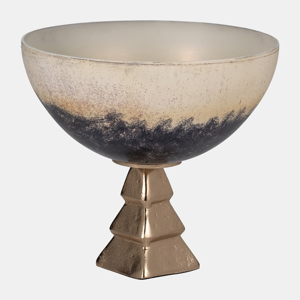 Glass, 11" Bowl W/ Stand, 2-tone White