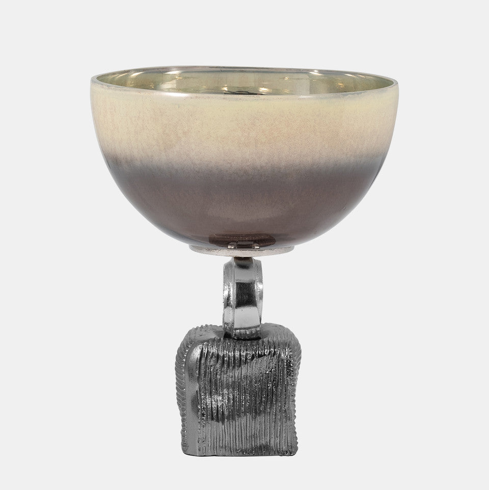 Glass, 12" Bowl On Metal Base