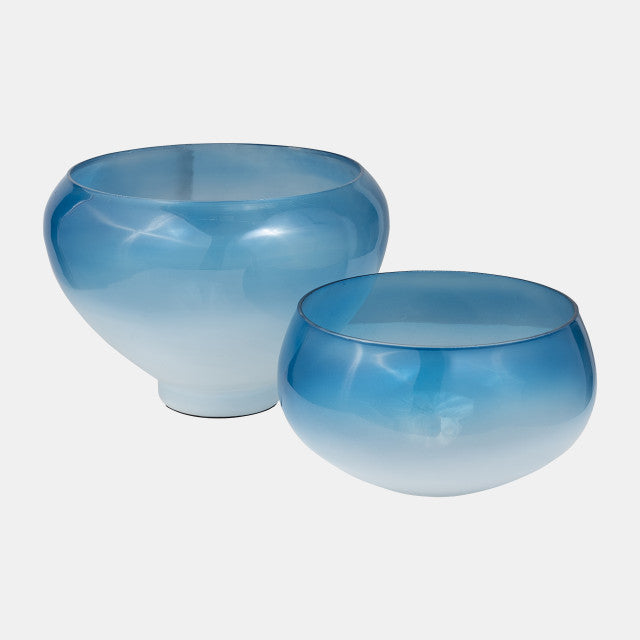Glass, Set of 2 10/14" Decorative Bowls, Blue
