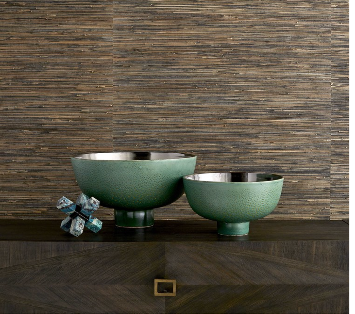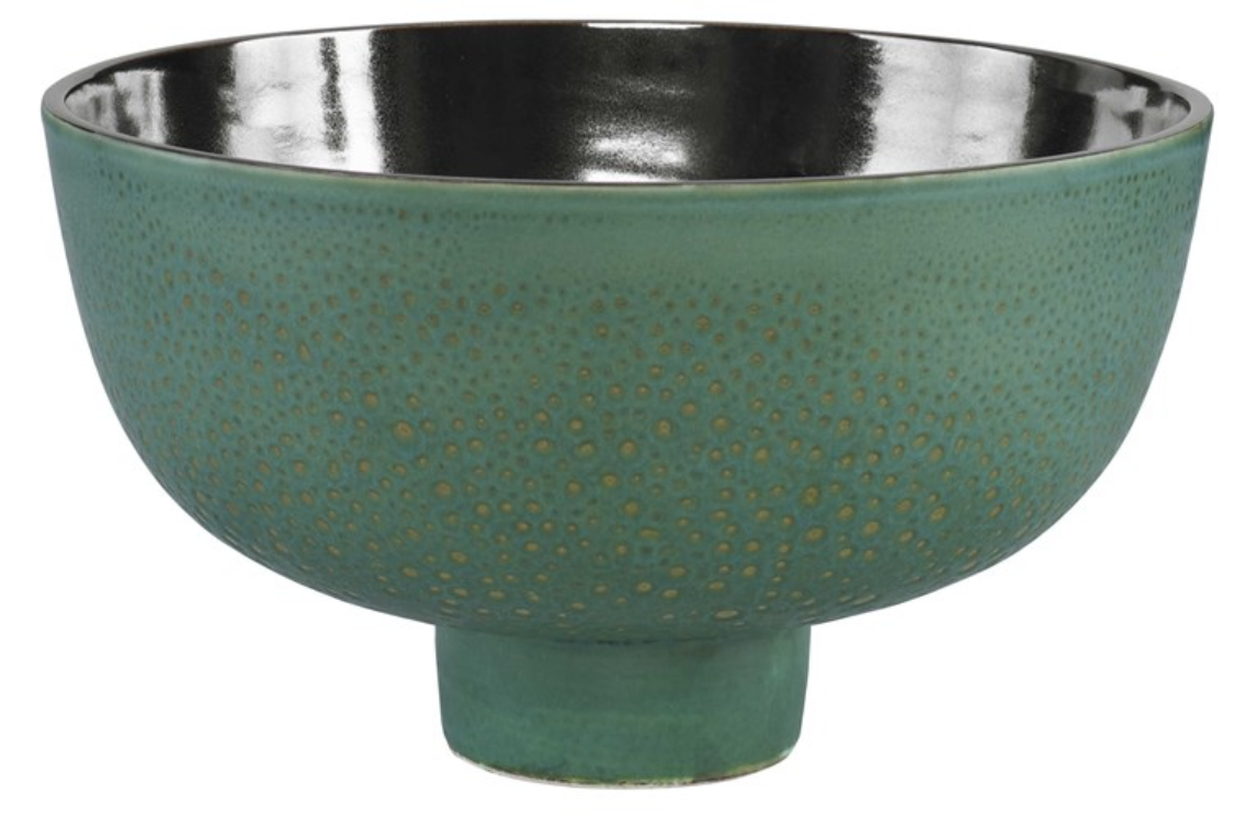 The Grassy Field collection is made from 100% ceramic with a hand-applied stippled exterior texture and is finished in rich shades of green with a reactive bronze glazed interior.