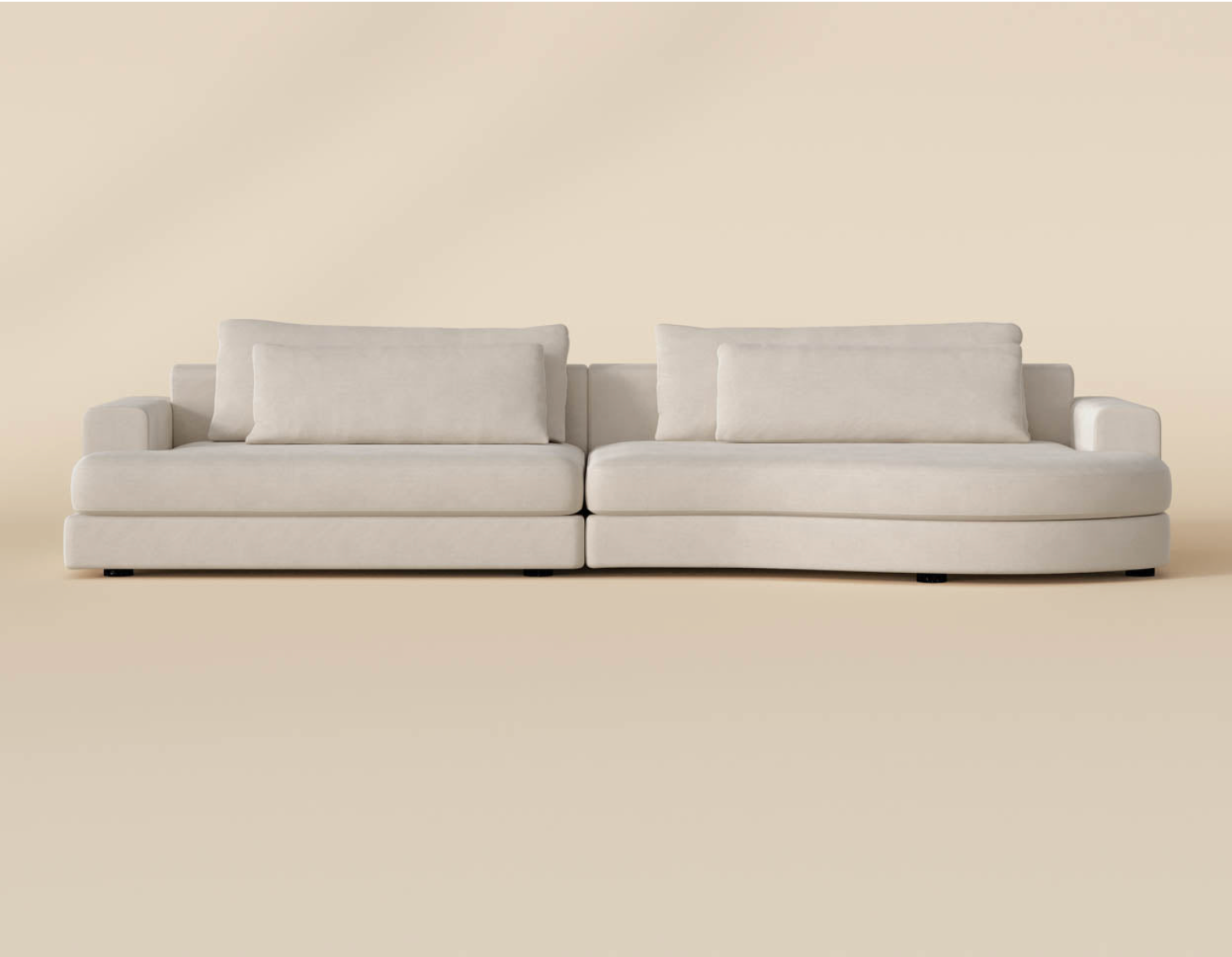 Lounge away in the laidback comfort of the Martini Sofa. Featuring soft curves and removable seat cushions upholstered in danny cream fabric. Completed with a black rubberwood base, this piece will bring versatile appeal to any living room.