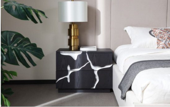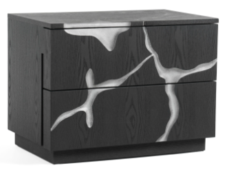Matte Brown Ash & Silver 2 Drawer Nightstand