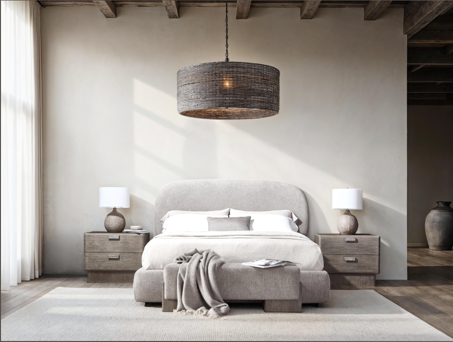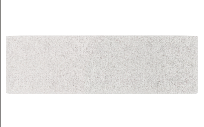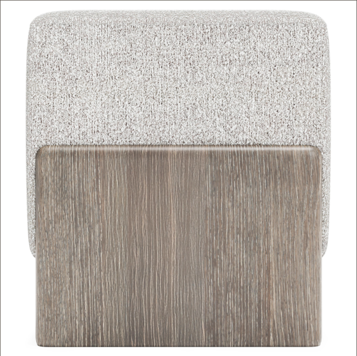 Two wood base panels cradle a deep upholstered seat, giving the Moonlight bench a bold design. The textured base panels extend up the sides of the seat in wirebrushed white oak in Puma finish.