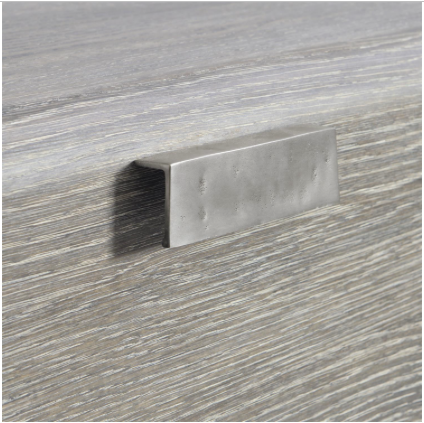 The Moonlight nightstand showcases perfect proportions that create a balance of modern and rustic styles. A plinth base supports a bold case that is defined by rounded corners and is finished in Puma. Two soft-close drawers are highlighted by geometric cast aluminum hardware in Graphite finish.