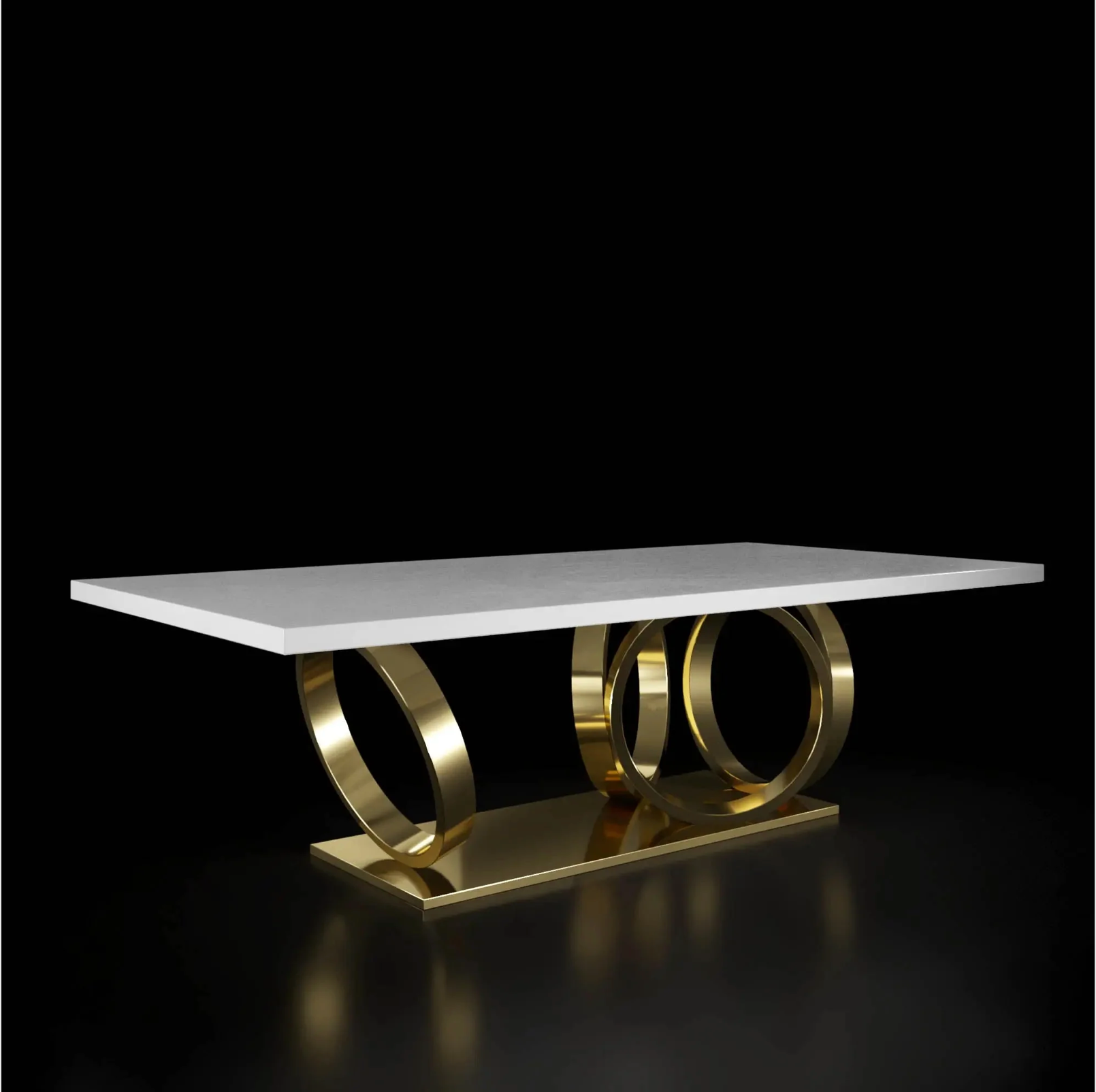 This stunning dining table features a brushed titanium gold stainless steel base, adding a luxurious metallic touch that pairs beautifully with a choice of premium tabletops: elegant black marble or timeless white marble. Perfect for contemporary and modern interiors, this dining table is designed for those who appreciate both style and functionality. Elevate your dining experience with the Oracle Titanium Gold table, where elegance meets durability in a centerpiece that will impress for years to come.