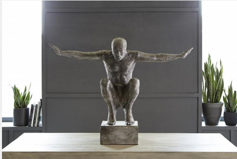 The Outstretched Arms Sculpture is made of aluminum in a striated surface that brings it one aspect of its design distinction: when the finish is rubbed onto its surface, it collects in the valleys to bring added patina to the gray sculpture. This lends it a textural feel that convinces the eye this is a vintage decorative accessory. In the foyer of a modern home filled with contemporary art, this decorative accessory will hold its own. We offer a number of sculptures in this family of decorative accessories. Each of these reflects the ethos that Phillips Collection personifies: modern organic.