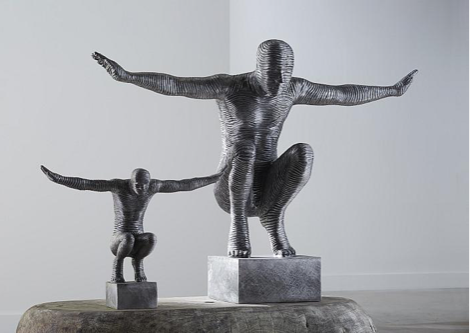 Made of metal in an aluminum finish, the Small Outstretched Arms Sculpture has a striated surface that brings it one aspect of its design distinction—when the finish is rubbed onto its surface, it collects in the valleys to bring added patina to the gray sculpture. This lends it a textural feel that convinces the eye this is a vintage decorative accessory. In the foyer of a modern home filled with contemporary art, this decorative accessory will hold its own. We offer a number of sculptures in this family of decorative accessories. Each of these reflects the ethos that Phillips Collection personifies: modern organic.