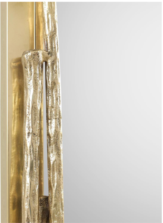 The Pick Up Stix Mirror is a bold, dimensional statement piece featuring a rectangular mirror held within a Polished Brass frame composed of slender rods. The layered arrangement of intersecting, overlapping rods creates striking depth and visual interest that brings a sculptural quality to any interior. This contemporary design is affixed with French cleat hangers, designed for both vertical and horizontal display.