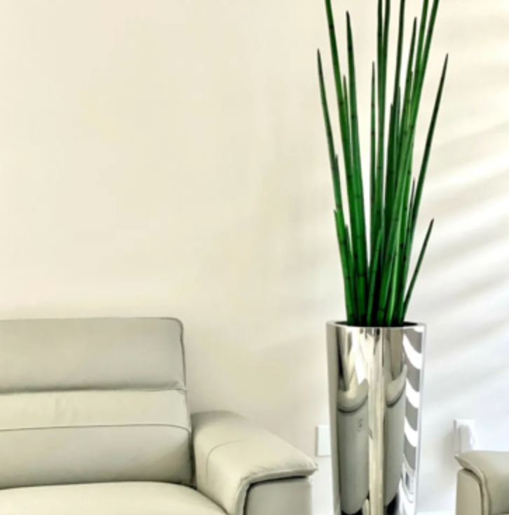 Polished Stainless Steel Medium Cone with Snake Grass Plant