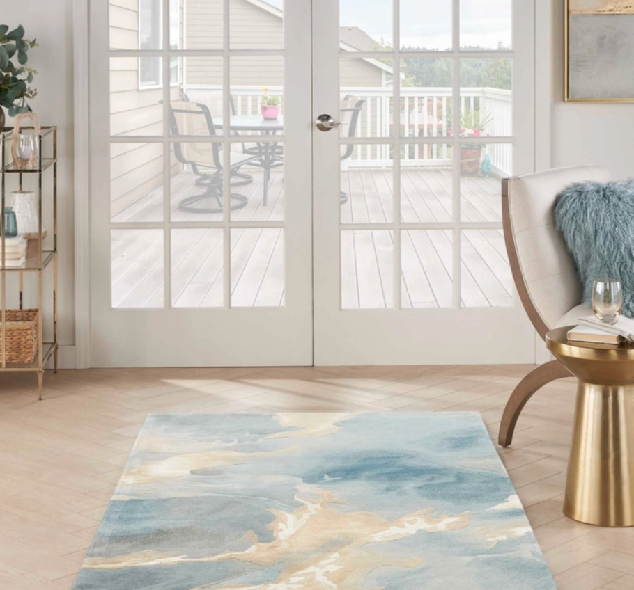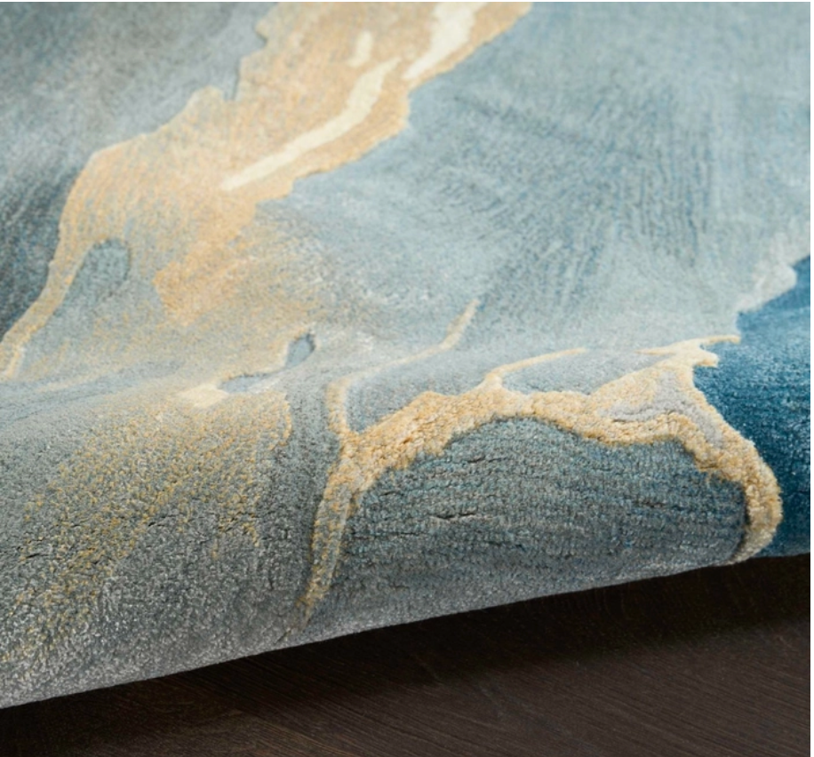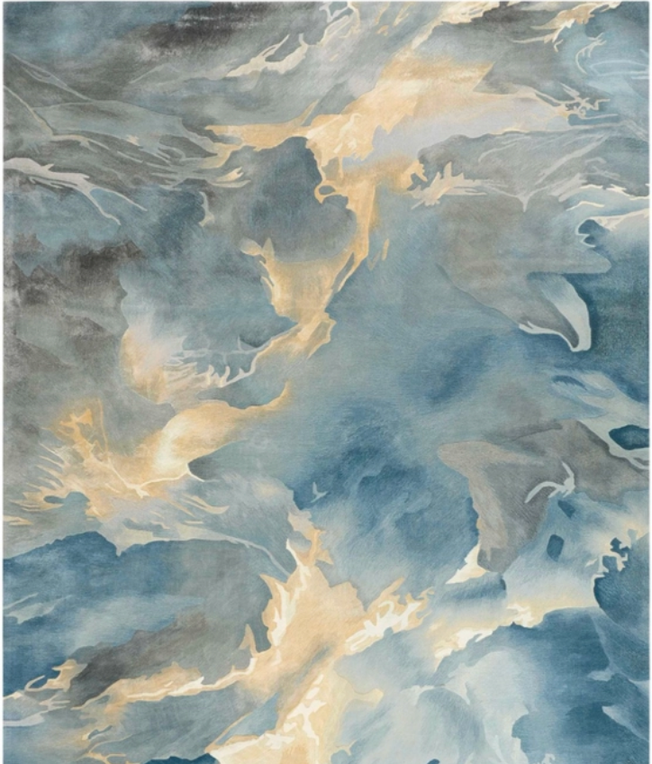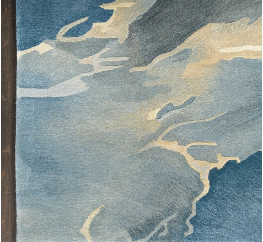 Create a dynamic focal point for your dcor with this abstract rug from the Prismatic collection. Deep greys, blues, and beige tones capture the mesmerizing beauty of a stormy sky, enhanced by silky fibers that highlight the intricate details. This modern rug is handmade from a blend of New Zealand wool and silk-like Luxcelle, with hand-carved accents adding rich texture.