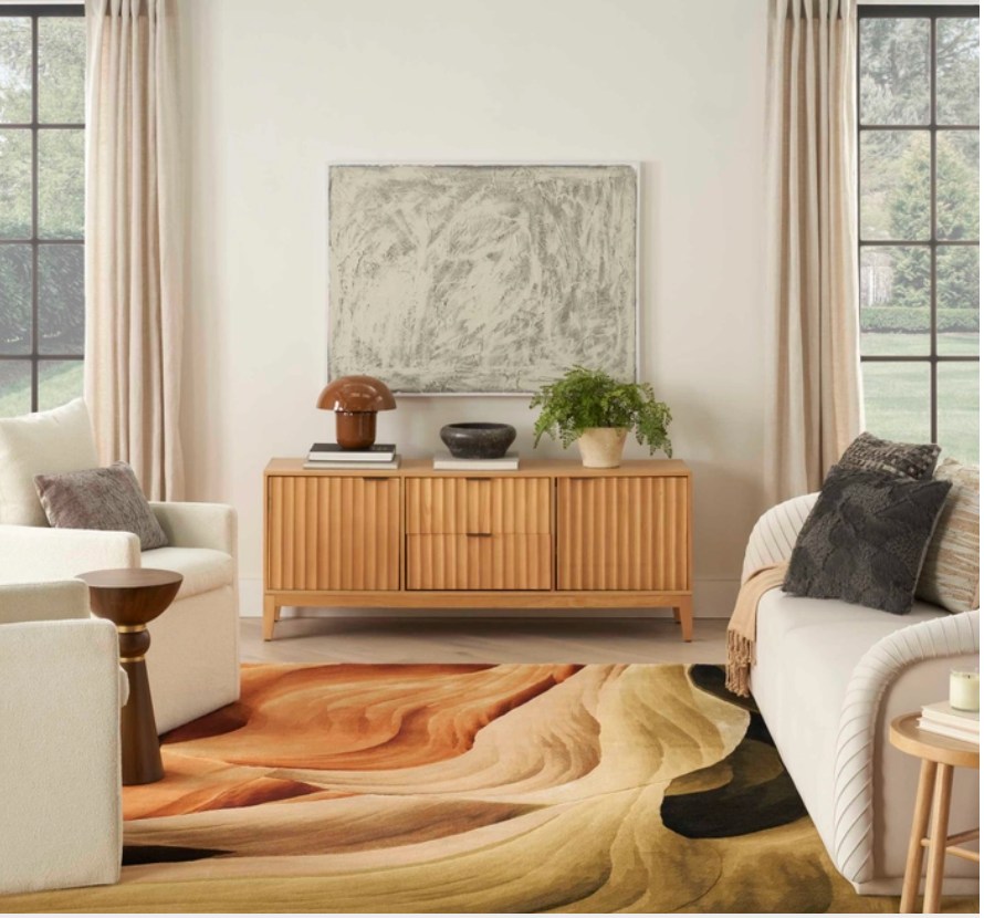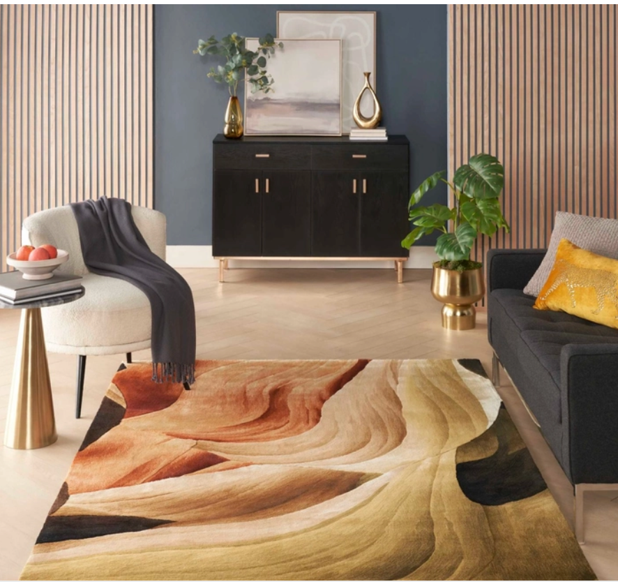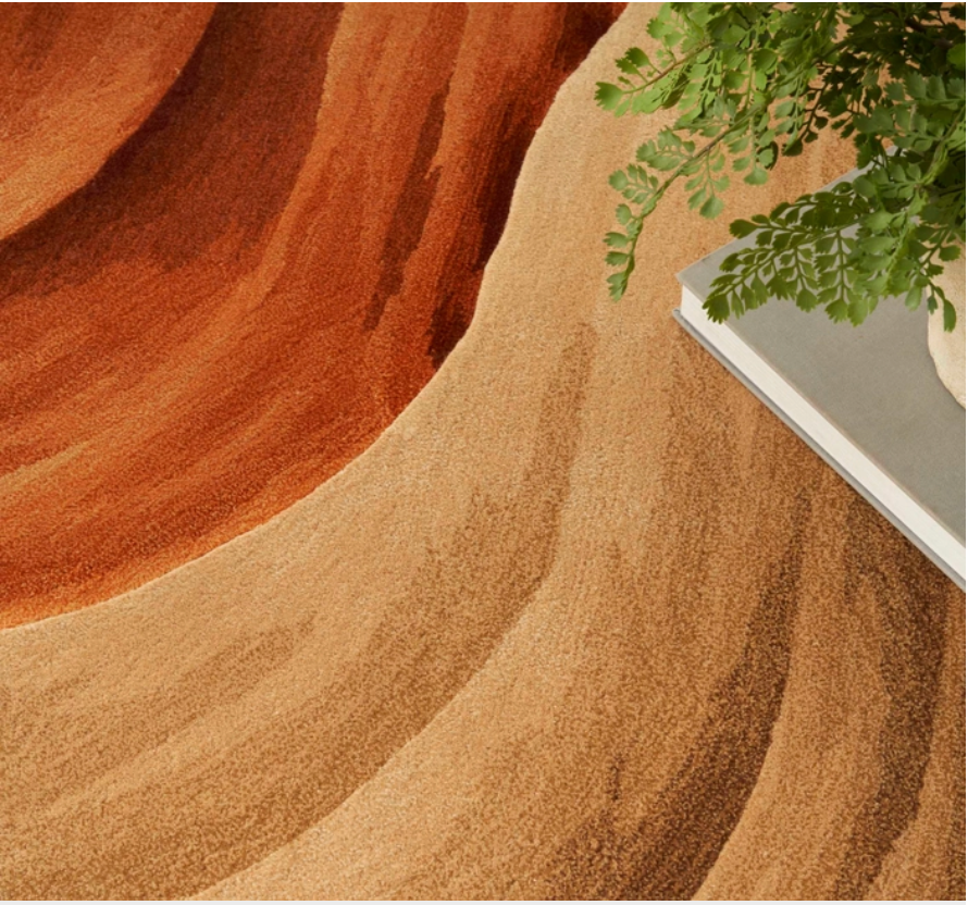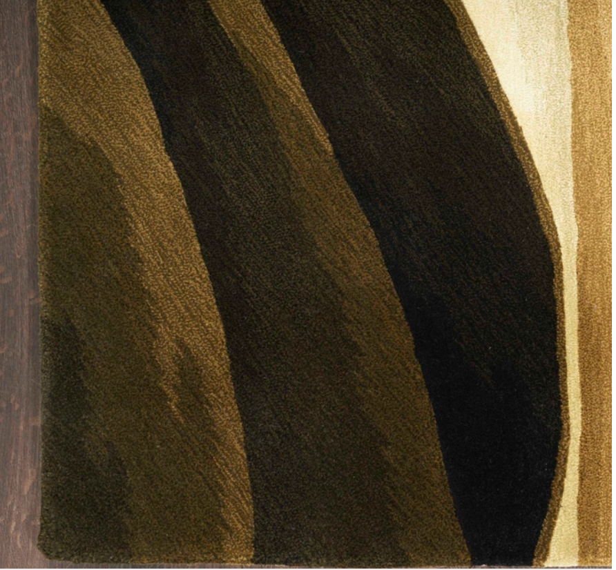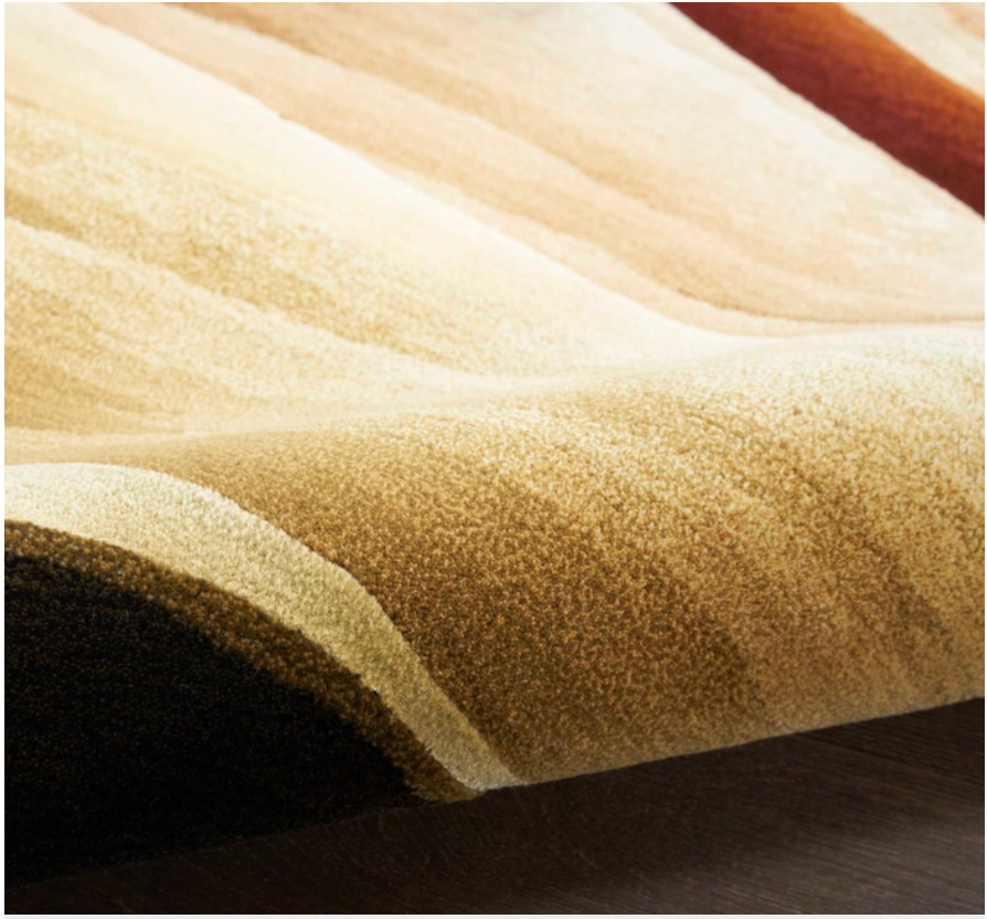 Bring your space to the height of artistic flair with this abstract rug from the Prismatic Collection. Free-flowing earth tones are complemented by a fiery blend of copper and orange, made even more stunning by stark shadows that give the illusion of depth. With hand-carved accents and shimmering highlights, this modern rug is a beautiful focal point for your dcor. Handmade from the finest blend of New Zealand wool and silk-like Luxcelle.