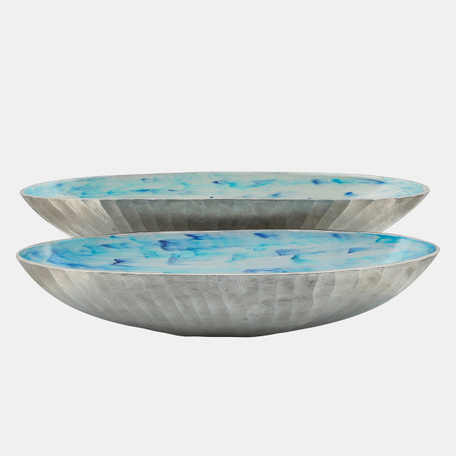 Set of 2 Aluminum 21/24" Oval Bowl, Skyblue