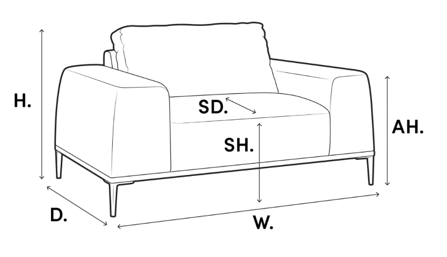 W. 41.34″ | D. 35.83″ | H. 28.35″ | SD. 25.59″ | SW. 22.83″ | SH. 17.72″ | AH. 27.56″
