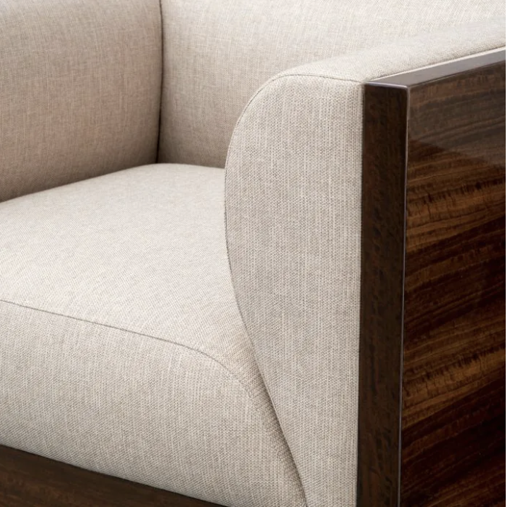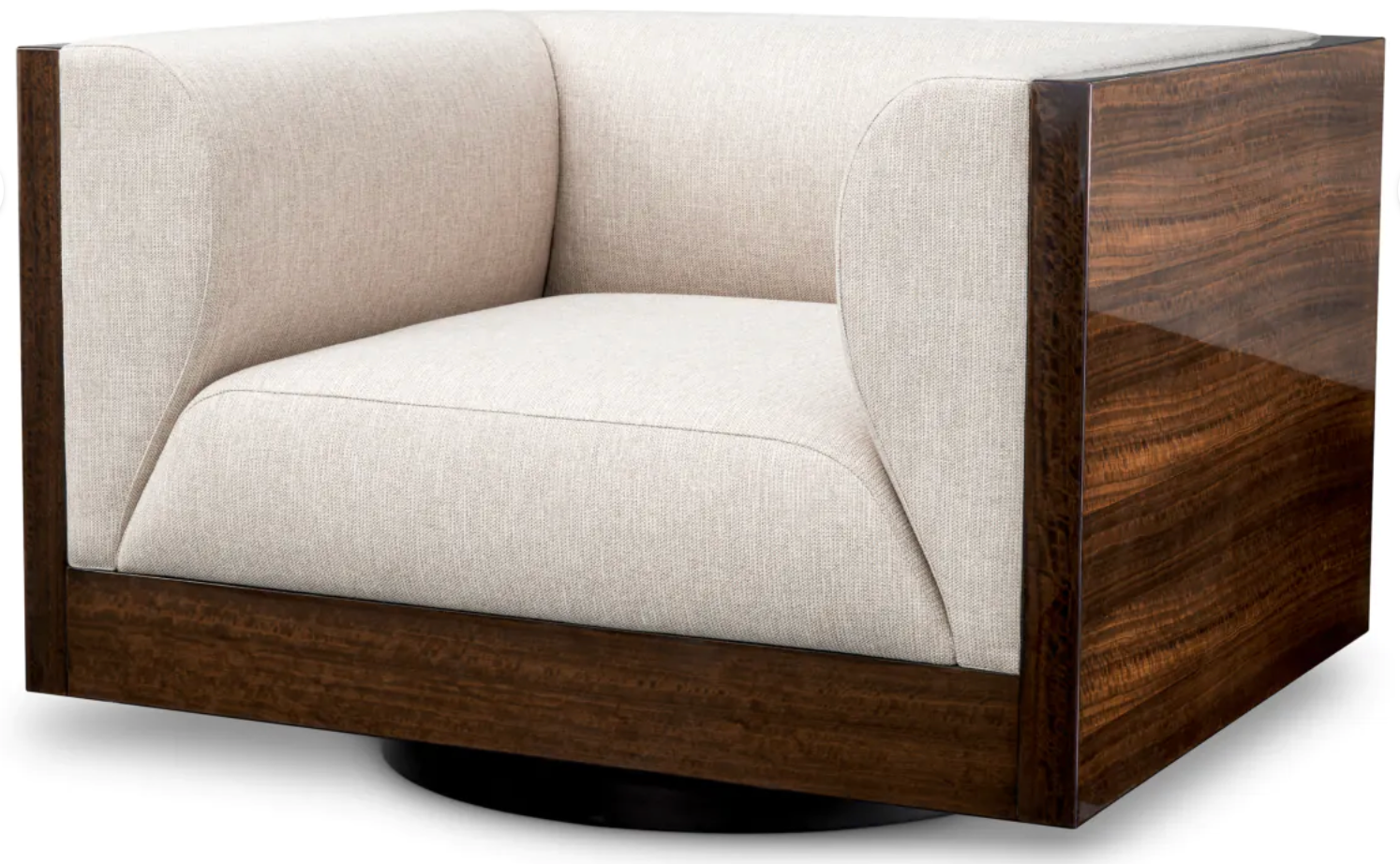 Featuring a high-gloss eucalyptus veneer and the sumptuous Loki natural upholstery, this chair exudes modern elegance. Its sleek swivel base adds dynamic functionality, ensuring a perfect blend of luxury and comfort for discerning tastes. Elevate your space with a piece that embodies both style and refined allure.