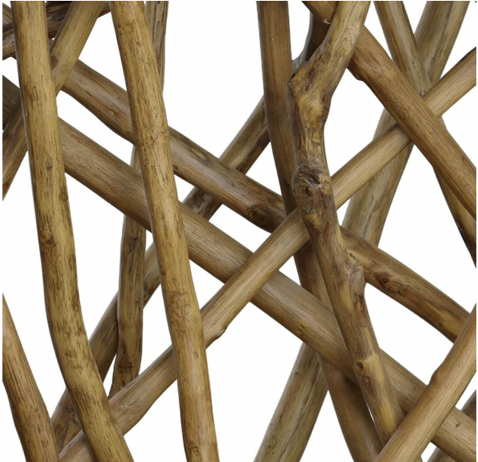 The Teak Maze Console is sure to make a statement in any space. This beautifully unique piece is constructed from solid mahogany wood in a rich walnut stain with natural gathered teak branches artfully arranged within the frame.